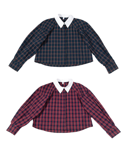 Camicia Scozzese Collo Bianco